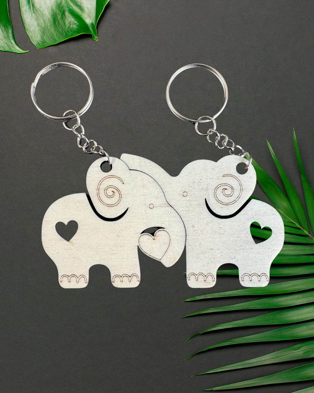 Celebra il vostro amore con questi dolcissimi portachiavi in legno intagliati a mano, raffiguranti teneri animaletti di coppia (come volpi, gatti, Elefantini ecc..).