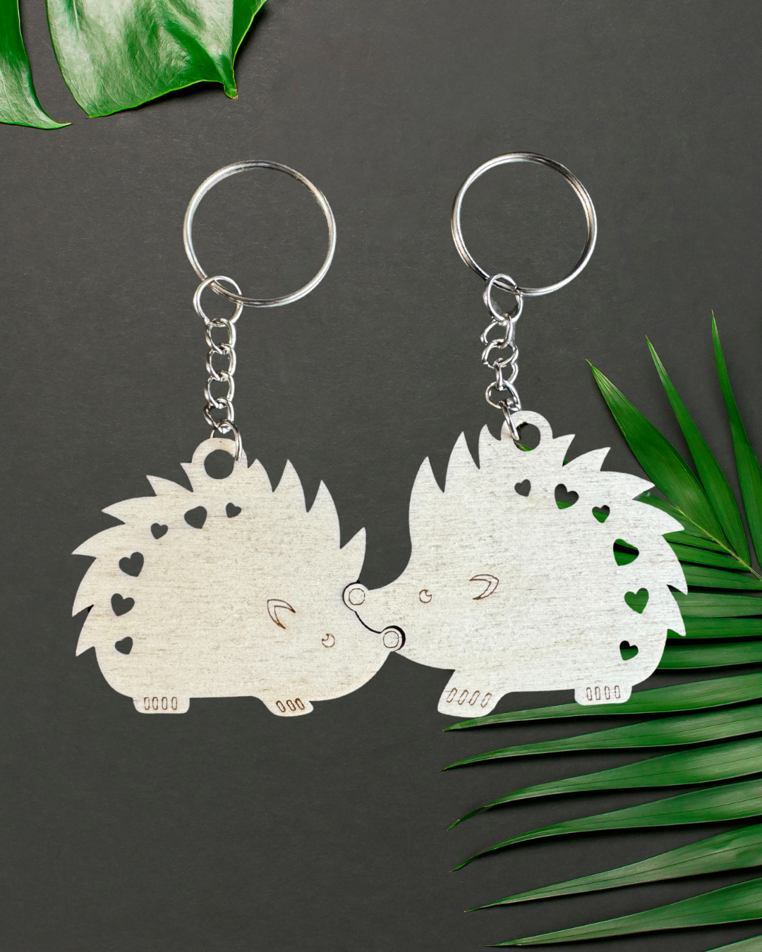 ✨ Portachiavi di coppia in legno – Animaletti innamorati ✨