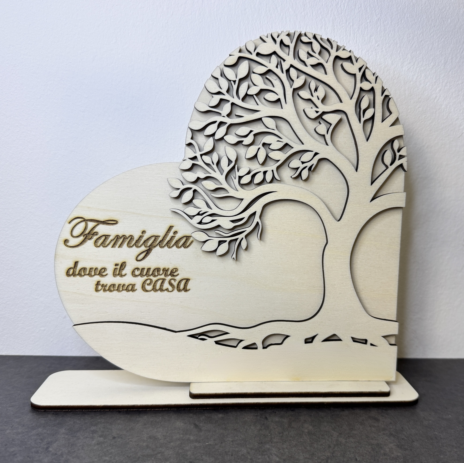 Questo cuore in legno è realizzato artigianalmente e impreziosito da un meraviglioso albero in effetto 3D, simbolo di forza, famiglia e legami che crescono nel tempo 🌳✨
