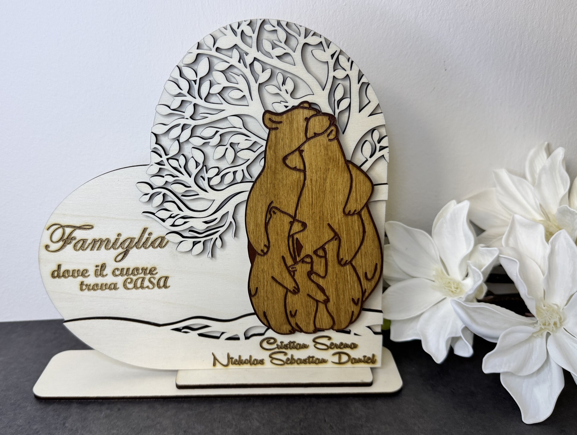 Su richiesta, puoi aggiungere una scritta personalizzata e una dolcissima famiglia di orsetti in 3D, ognuno scelto per rappresentare i membri della tua famiglia. Un dettaglio tenero e unico, che rende ogni creazione davvero speciale 🐻❤️🐻