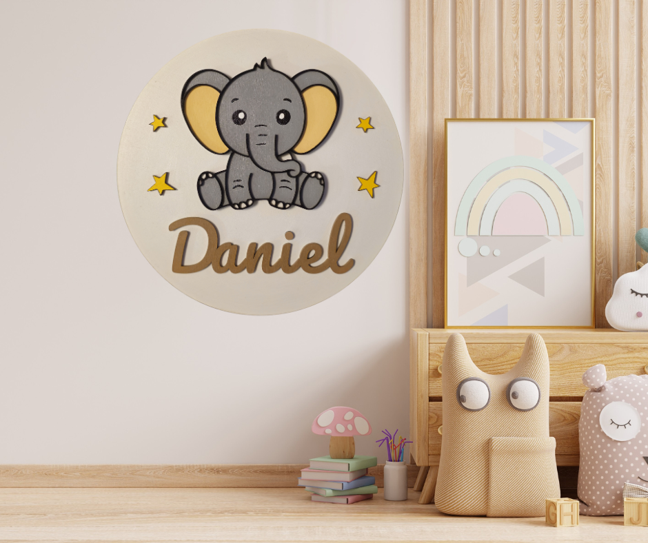 Fuoriporta in legno personalizzato con nome e Elefantino