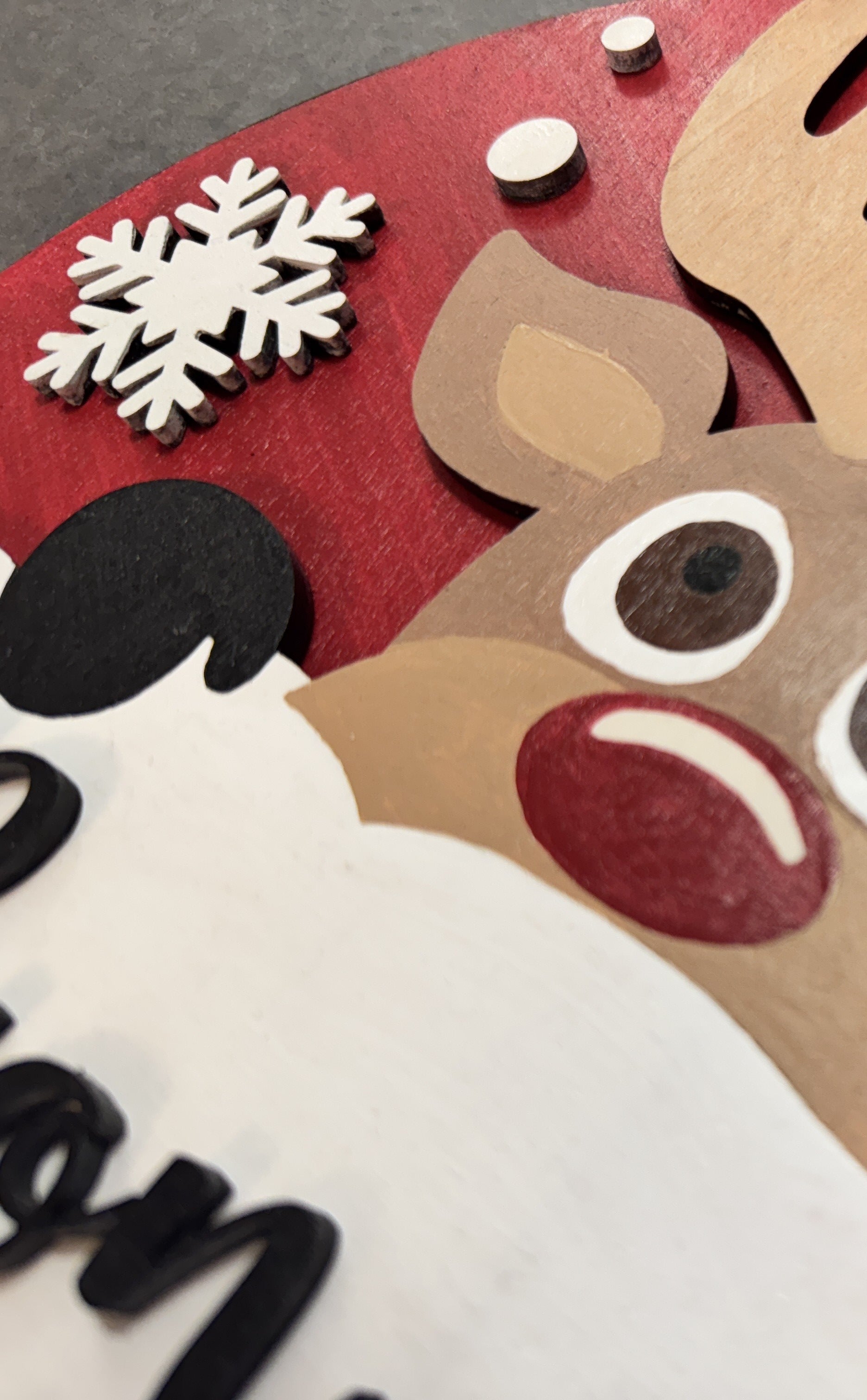 Realizzata e dipinta a mano, raffigura una dolce Renna di Natale in 3D all’interno di un cerchio intagliato con cura.