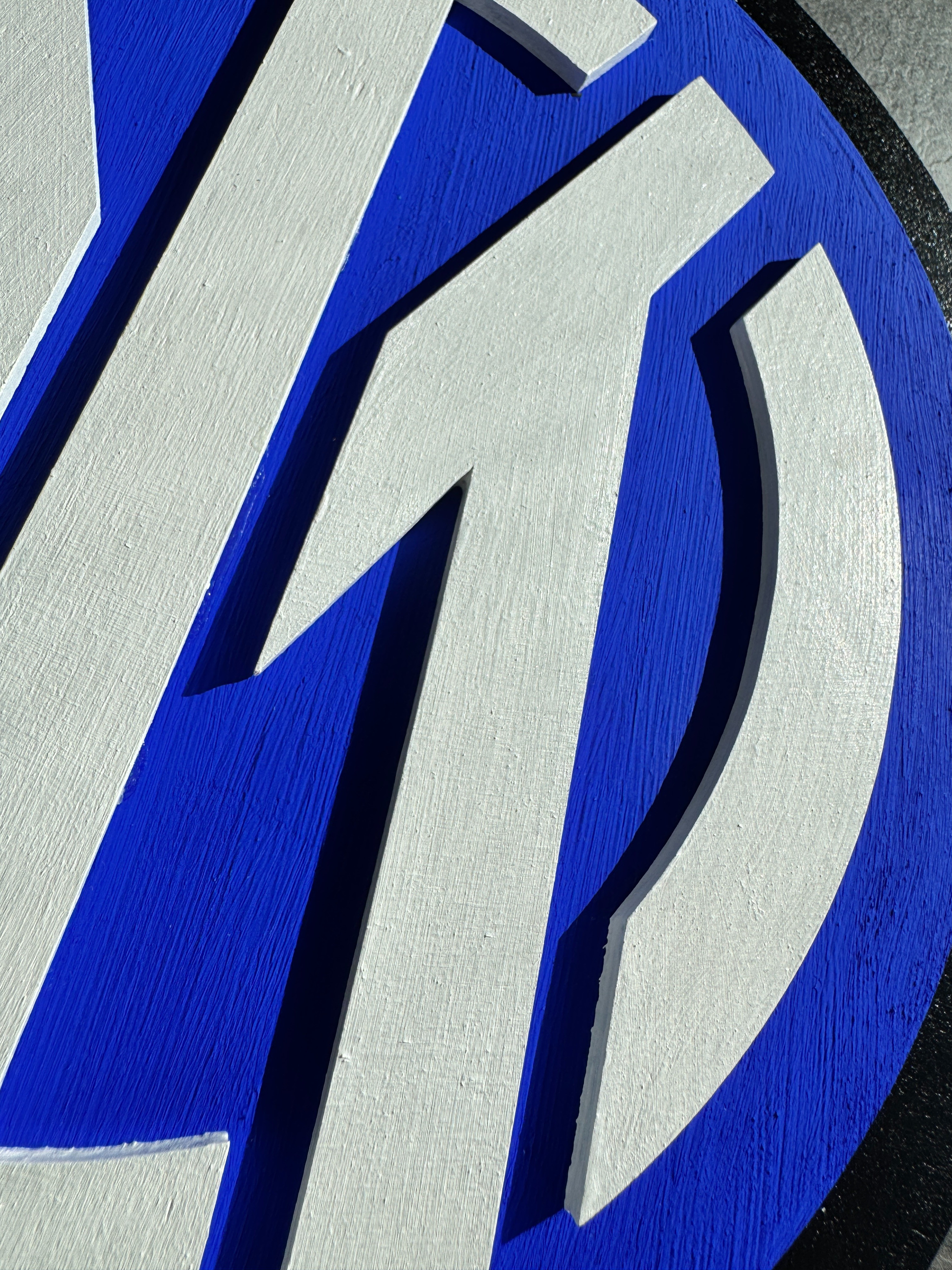 Ogni pezzo è dipinto a mano e rifinito con un effetto tridimensionale (3D) che dona profondità e realismo al logo, trasformandolo in un oggetto decorativo unico.